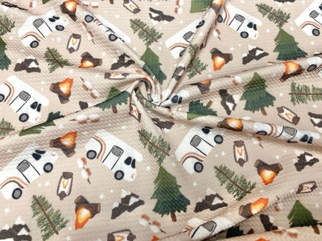 Brittany Frost Designs Camping RV Bullet Print #797 Ribbed Scuba Double Knit Stretch Poly Spandex Apparel Craft Fabric 58"-60" Wide BTY