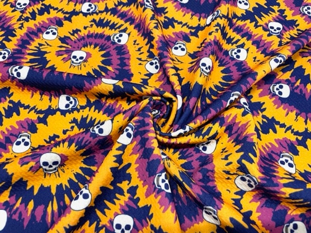 Tie Dye Skull Bullet Print #639 Ribbed Scuba Techno Double Knit 2-Way Stretch Poly Spandex Apparel Craft Fabric 58"-60" Wide BTY