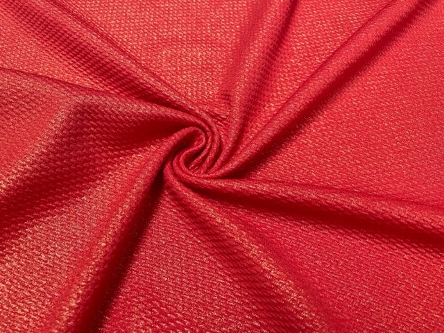 Shimmer Light Gold Metallic Red Bullet #235 Ribbed Double Knit 2 Way Stretch Poly Spandex Apparel Craft Fabric 58"-60" Wide