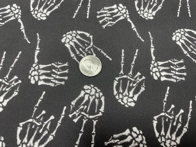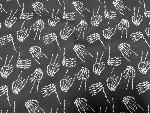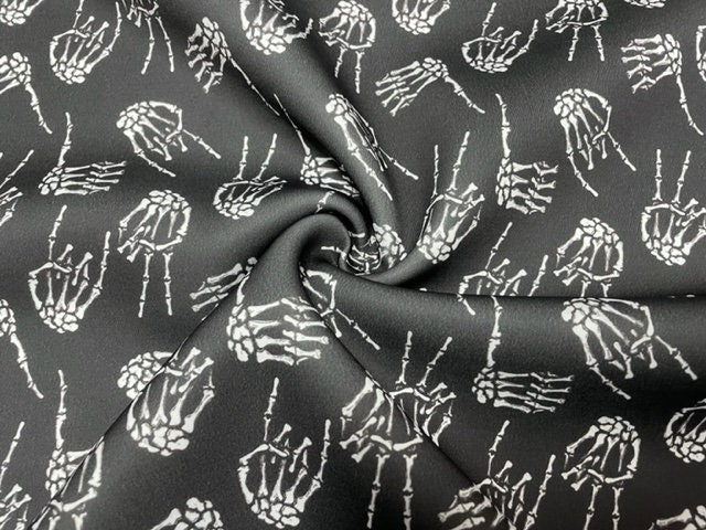 Spooky Skull Hand Peace Super Scuba Techno Print #98 Double Knit Stretch Fabric Poly Spandex Apparel Craft Fabric 58"-60" Wide By The Yard